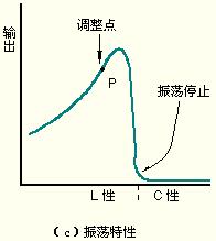 圖(c)所示的為振蕩電路的特性,將T的L先調(diào)整至最小,使諧振電路呈電感性。然后,再調(diào)整鐵芯,使L增大,在諧振電路成為電容性時(shí),會(huì)馬上使振蕩停止。接著,將調(diào)整點(diǎn)調(diào)至振蕩停止點(diǎn)的稍微前方處即可。
