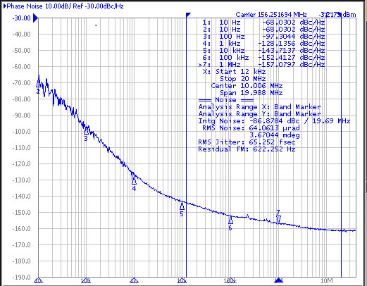 相位噪音特性(起振頻率156.25MHz、電源電壓3.3V)