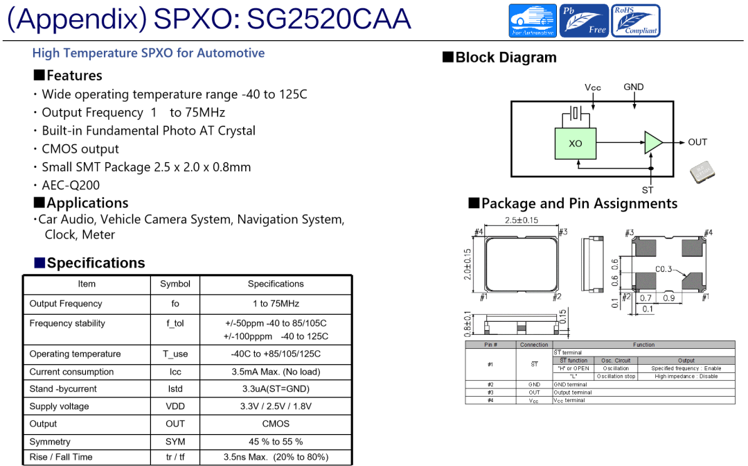 對于芯片的穩(wěn)定工作,高性能的晶體晶振必不可少。愛普生的晶體晶振有著高可靠性,低功耗,小封裝的特點(diǎn),并且通過AEC-Q200認(rèn)證,讓行駛更放心。推薦SG2016CAA,SG2520CAA可編程有源晶振配合HUD芯片使用。